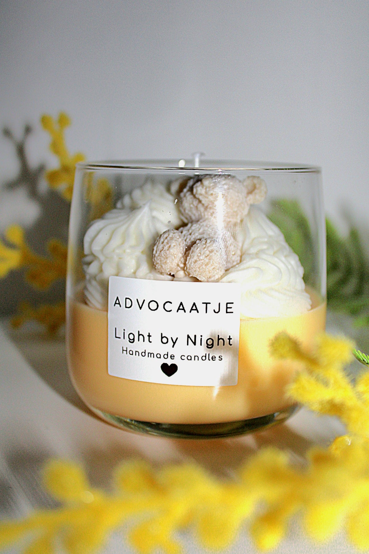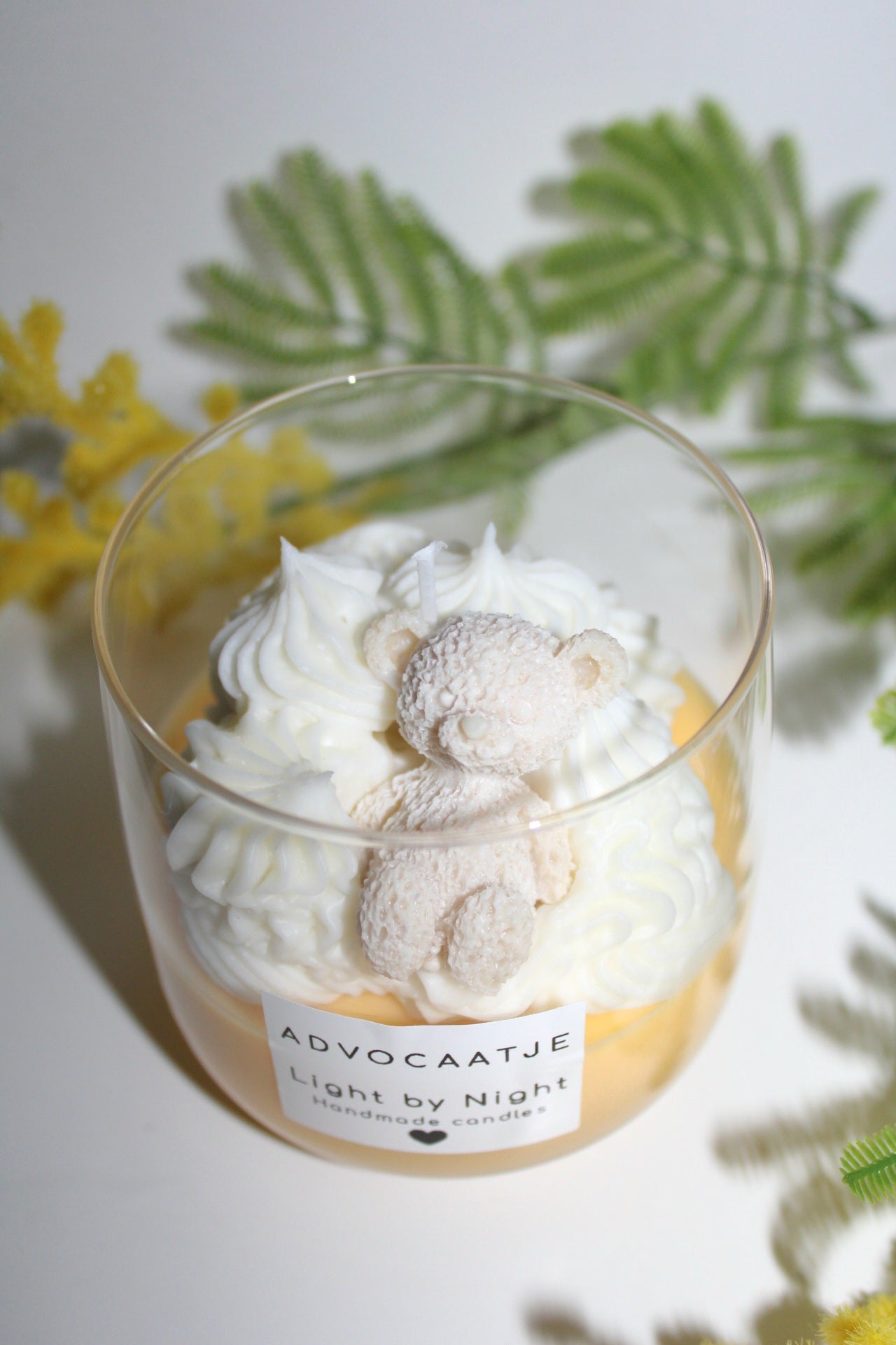 "Advocaatje" is a typical Dutch drink. It is a thick-liquid liqueur prepared with eggs. This candle looks exactly like the liqueur with the yellow color, and we can not forget the whipped cream ofcourse. We've added a cute little bear on the side to make the candle extra special. With Vanilla scent. đź’›